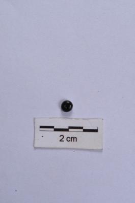 | Description / विवरण | Glass bead, globular shaped, black in colour, smooth glossy surface. |