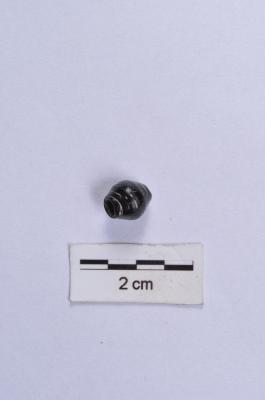 | Description / विवरण | Glass bead, truncated bi-conical shape, smooth glossy surface, with perforation. |