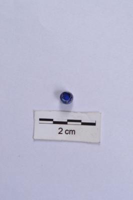 | Description / विवरण | Glass bead, blue in colour, circular shape, with perforation, smooth glossy surface. |