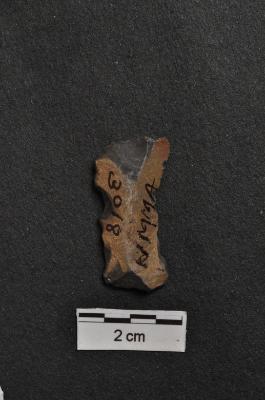 | Description / विवरण | Utilized flake, with concave edges, use-ware marks on both working edge |