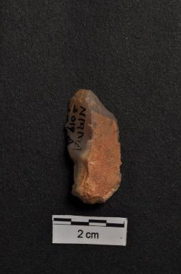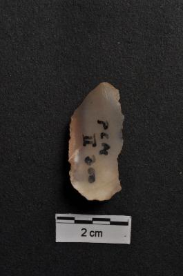 | Description / विवरण | Utilized flake, use-ware marks on both working edge, cortex visible on dorsal surface. |