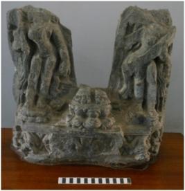 | Description / विवरण | Lower portion of a Stella containing two damaged female figures possibly of Lakshmi and Saraswati on right and left side respectively and the feet of the central figure Vishnu in between them. Face and legs, hands, attributes etc. all features are damaged. |