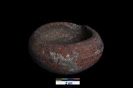 | Description / विवरण | A small bowl with convex profile & featureless, in curved rim, round base. It is painted on outer, upper sides in the form of oblique strokes placed on horizontal bands. |