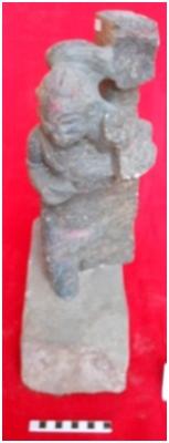 | Description / विवरण | Badly damaged female figure fixed on a pedestal hands legs, lips, nose all are damaged. Hairs are neatly tied in a knot. Possibly it was a figure of a Nayika. |