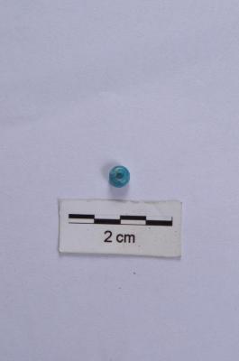 | Description / विवरण | Blue colored glass bead, globular shape, with perforation, smooth glossy surface. |