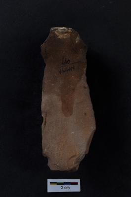 | Description / विवरण | Blade, long body, diffused bulb with striking platform, two ridges on dorsal surface. |