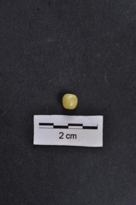| Description / विवरण | Glass bead, globular shaped, yellow in colour, smooth glossy surface, with perforation |