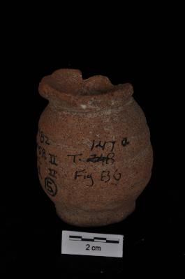 | Description / विवरण | A small pot with flat base & slightly out-curved rim. It has a corrugated body. |