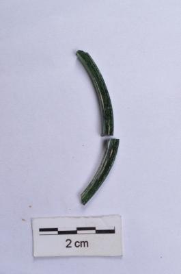 | Description / विवरण | Glass bangle, two fragments, plano-convex cross-section, black glossy surface. |