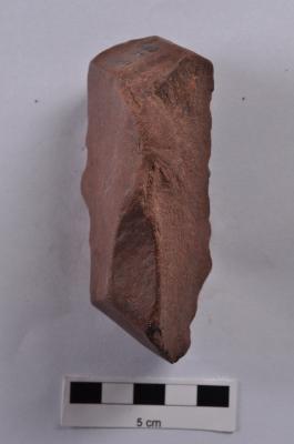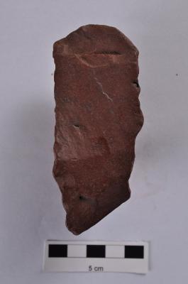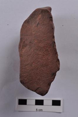 | Description / विवरण | Flake, parallel sided, retouches on both working edges, a ridge on dorsal surface. |