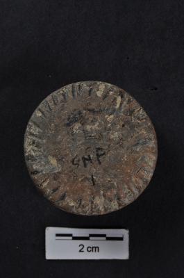 | Description / विवरण | Terracotta disc with incised liner marks round the periphery. |