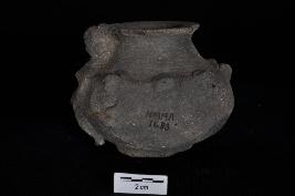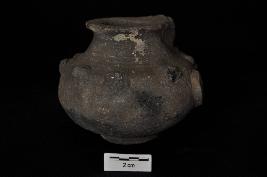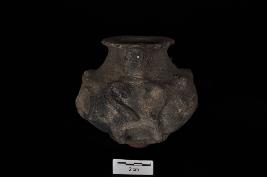| Description / विवरण | Small pot, outside decorated with a human figurine in appliqu . |