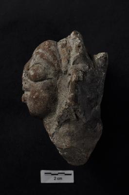 | Description / विवरण | Head of human figurine, with prominent facial features. |