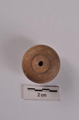| Description / विवरण | Areca-nut shaped bead, wheel-made, with perforation. |