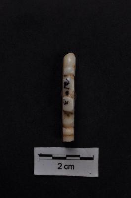 | Description / विवरण | A broken shell bangle. Outer surface having a grove and marginal short vertical incisions at one edge only. |