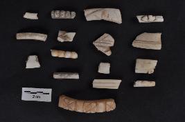 | Description / विवरण | Seven plain bangle pieces.Ten decorated pieces. The decorations such as floral pattern, parallel lines, and grooves. |