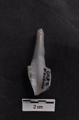 | Description / विवरण | Planged flake, prominent bulb with prepare platform at proximal end, a ridge on dorsal surface. |