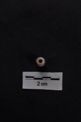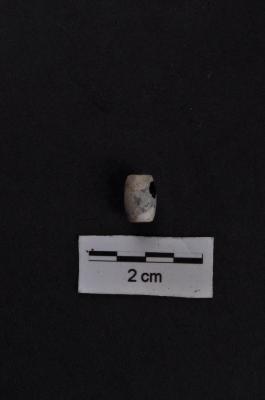| Description / विवरण | A long truncated barrel shape bead with a circular cross section, grey in colour with bands, smooth and polished surface. |