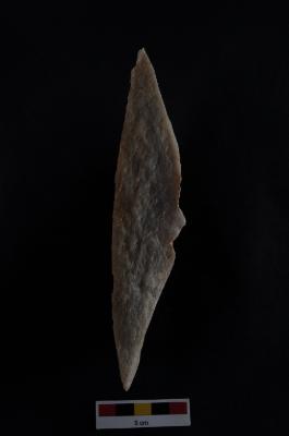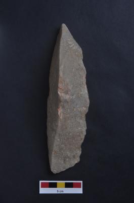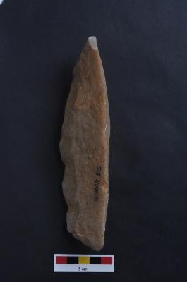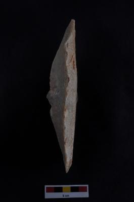 | Description / विवरण | Utilized flake, long body triangular cross section, use-ware marks on working edge. |