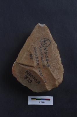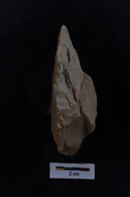 | Description / विवरण | Point made on flake, flaking on dorsal surface, retouches along the periphery. |