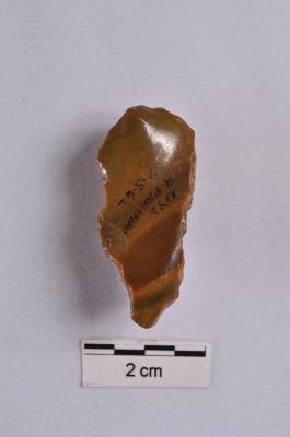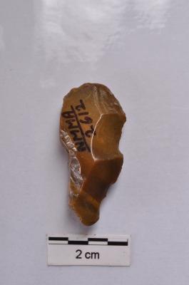| Description / विवरण | Flake, prominent bulb on ventral surface, prepare platform visible, a ridge on dorsal surface, retouches on both edges, tapering distal end. |