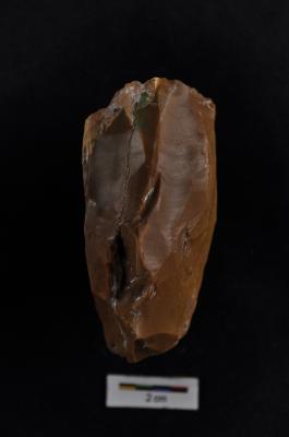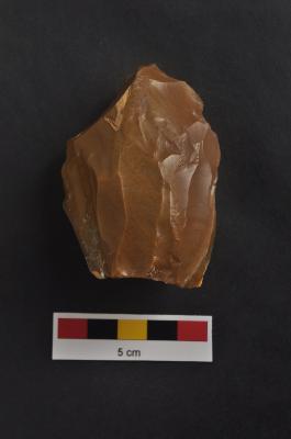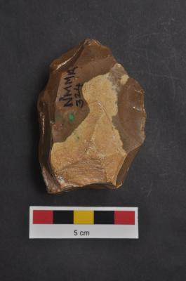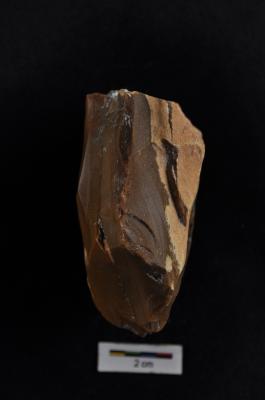 | Description / विवरण | Core, prepare platform visible, flake scars on one side of surface. |