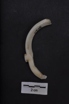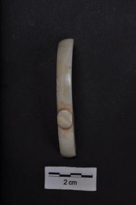 | Description / विवरण | A broken fragment of a half pure white shell, with outer surface with a raised knob. |