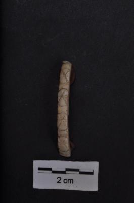 | Description / विवरण | Fragment, outer surface having circular panel in relief, incised to make a floral pattern, but thinner |
