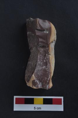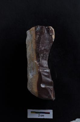 | Description / विवरण | Flake, long body with parallel sides, another flake scar on dorsal surface. |