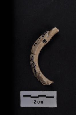 | Description / विवरण | Fragment, small in size bangle, outer surface having incised slant vertical and hatched linear designs. |