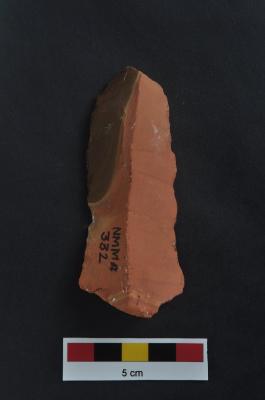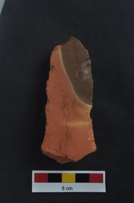 | Description / विवरण | Blade, diffused bulb with striking platform, a vertical ridge on dorsal surface, use-ware marks on both working edge |