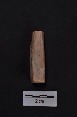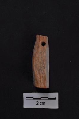 | Description / विवरण | A flat based piece of ivory with the top truncated and a neat perforation near the head, probably a pendent |