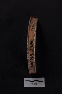 | Description / विवरण | A fragment of a shell bangle which has a channel cross section. It has an abraded surface |