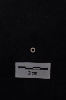 | Description / विवरण | A flat disc shape steatite bead, circular cross section is white in colour, has a large perforation and has a smooth and polished surface |