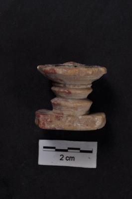 | Description / विवरण | Fragment with the extent base rectangular in shape, has a stem with grooves and a funnel- shaped projection with a flat top having a pair of incised circles & a central knob, height 25 mms, diameter of the upper face 21mm. |