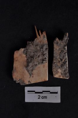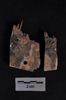 | Description / विवरण | Fragment of a comb, yellowish polished ivory, with a triangular cross section and has a weathered surface. |