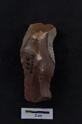 | Description / विवरण | Blade, diffused bulb with prepare platform at proximal end, crested ridge on dorsal surface, use-ware marks on both working edges |