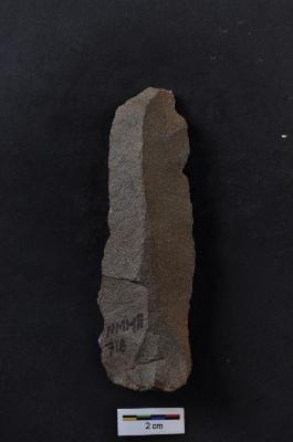 | Description / विवरण | Blade, parallel sided, diffused bulb with striking platform, a ridge son dorsal surface, use-ware marks on both working edge. |