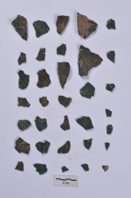 | Description / विवरण | The copper vessel is in a fragmentary state of thirty two pieces. It was probably or deliberately buried over a pebble base. It was so fragile that the almost attention to pick it out intact could not be done successfully. |