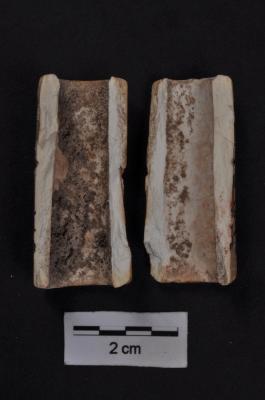 | Description / विवरण | A hollow piece of ivory of irregular tubular shape, polished surfaces, might be a handle. It has a weathered surface |