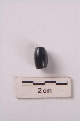 | Description / विवरण | Barrel shaped bead, hexagonal cross-section, black in colour, smooth polished surface, with perforation. |