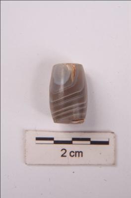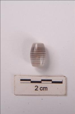 | Description / विवरण | Agate bead with perforation, barrel shaped, circular cross-section. description same for both beads |