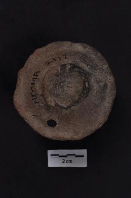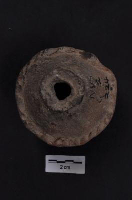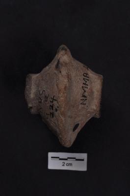 | Description / विवरण | A complete biconial pot, convex discoid base, rope design at the carination made by joining pantis face to face, it is a handmade pot. It is made up of coarse fabric, red in colour and irregular in surface. |