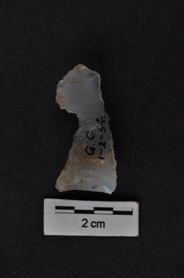 | Description / विवरण | Utilizes flake, prominent bulb with prepare striking platform, retouches on both working edges, irregular ridge on dorsal surface. |