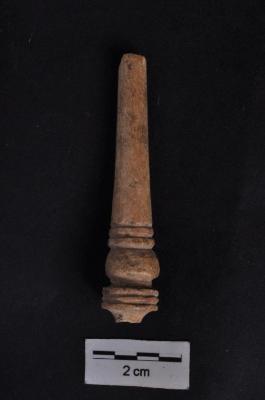 | Description / विवरण | Fragment, body tapering, end broken, head grooved, knob also broken, it is light brown in colour and well polished. |