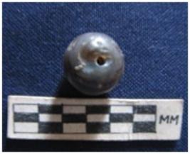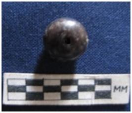 | Description / विवरण | Bead of spherical shape. It is brown in color with white banded and partially broken. |