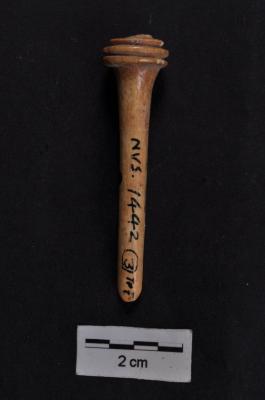 | Description / विवरण | Broken third stage, tapering body and flared. Has a grooving over the head. It is light brown in colour and has a polished body. |