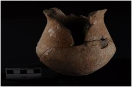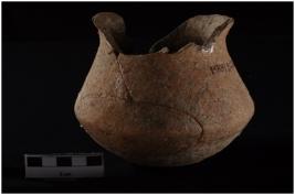| Description / विवरण | A lota with an out curved rim, sharp carination on the belly and round bottom provided with an incipient rim, red ware, well baked, medium fine fabric. |