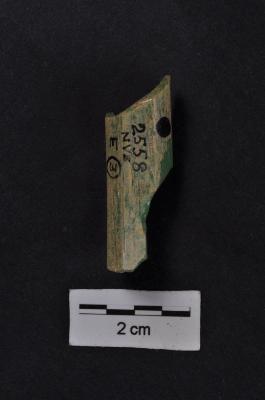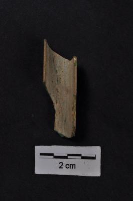 | Description / विवरण | Fragment of green colored glass bangle, concave cross section |
