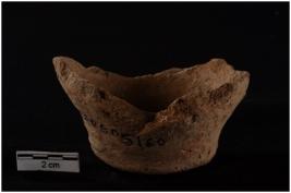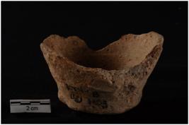 | Description / विवरण | A miniature vase with convex bulbous profile & a disc base, red ware, well field, medium coarse fabric. |